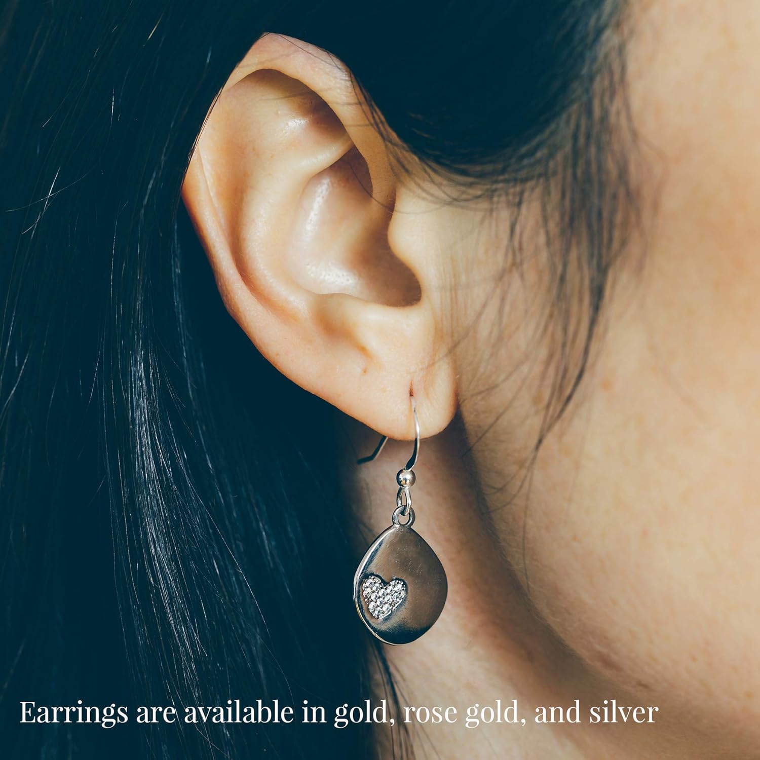 Designed By Stacey Handmade Unique Cubic Zirconia Heart Earrings, Goldtone Dangle Drop Earrings, Jewelry Gifts for Women, Birthday, Mother's Day, Anniversary, Wedding, Homecoming
